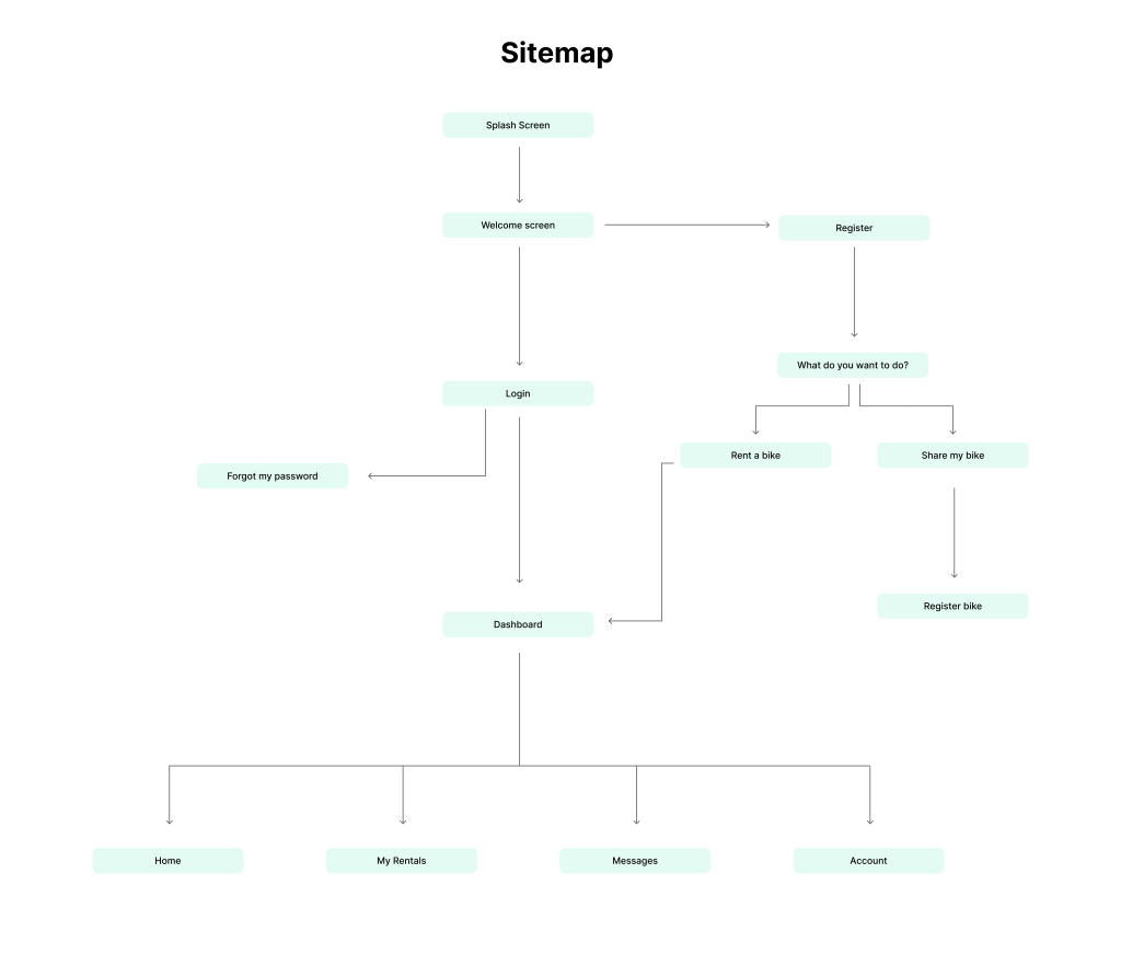 Compartir is a peer-to-peer bike rental solution designed for individuals to share their bikes and their experiences with cycling. It was developed as my final project for my UX/UI Design course at Mentorama. Following the bike sharing market trend, Compartir offers a platform for people to share their own bicycles in a more communal and eco-friendly manner. Its unique feature is that it allows users to rent a customized bike of their choice, instead of standardized bikes with minimal features typically offered by companies. The result was the development of an app where individuals can register both to share their bikes and to rent from those who are sharing.