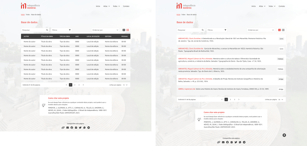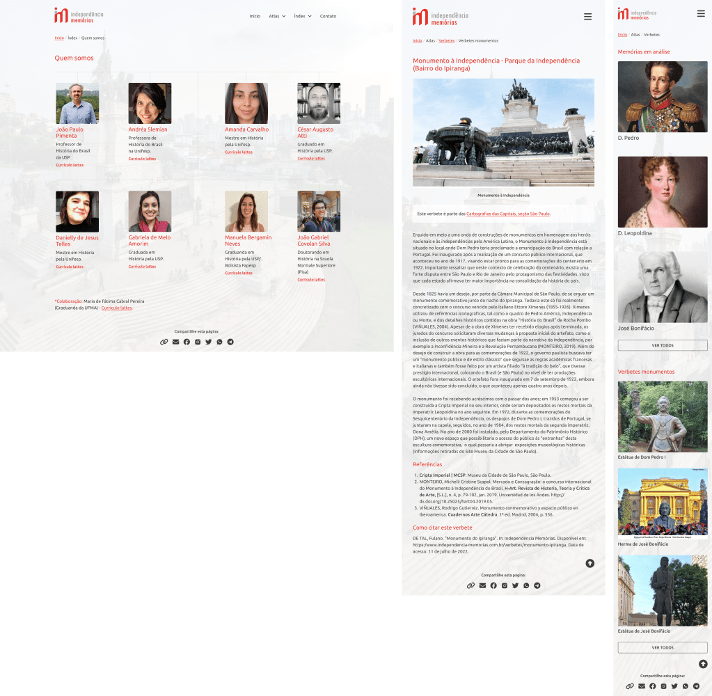 Independência-Memórias is a platform dedicated to presenting historical research about Brazil’s bicentenary of independence, conducted by researchers from the Federal University of Sao Paulo (UNIFESP) and the University of Sao Paulo (USP). The website is divided into two parts corresponding to two projects: the Atlas project and the Index project.